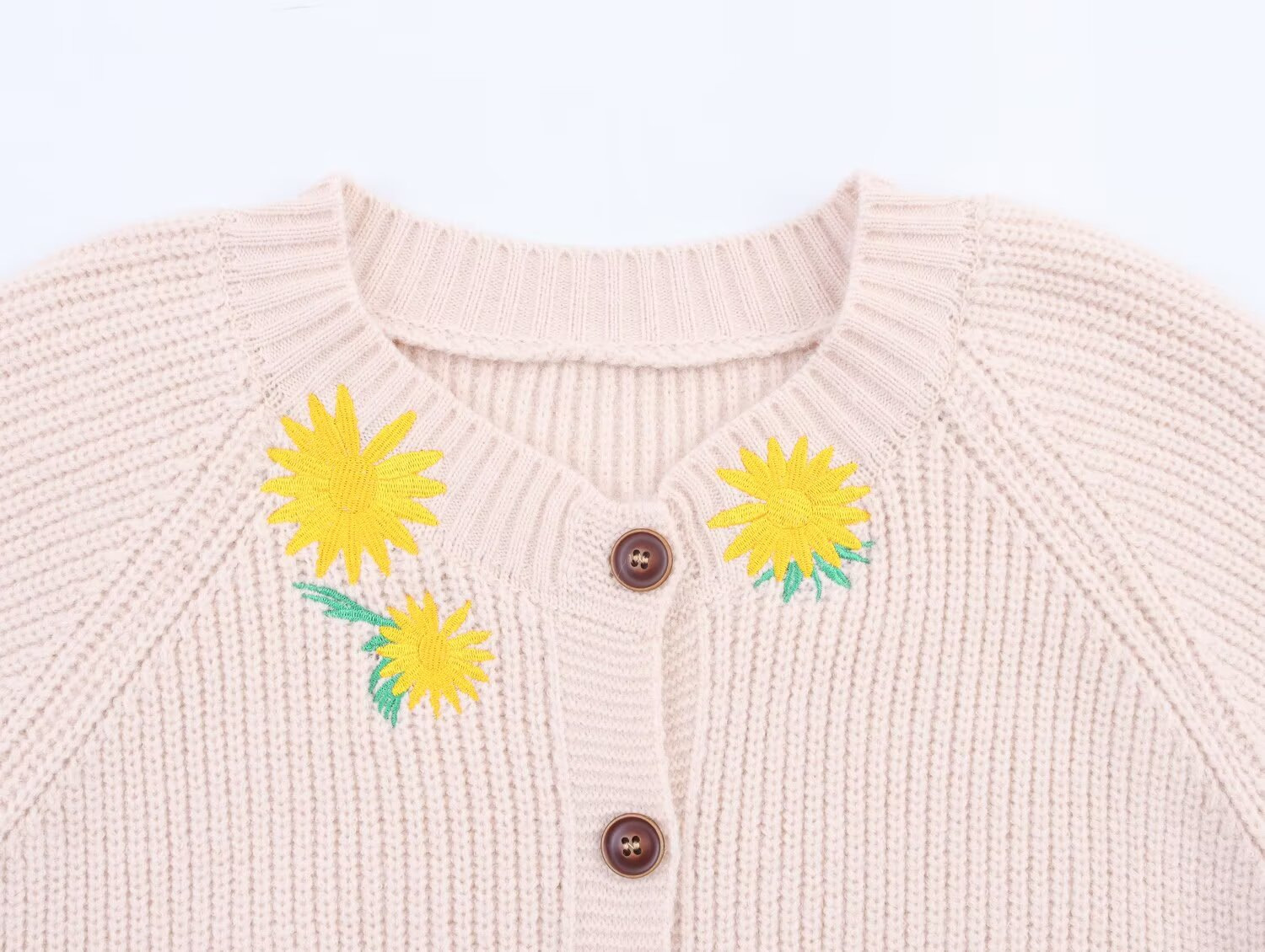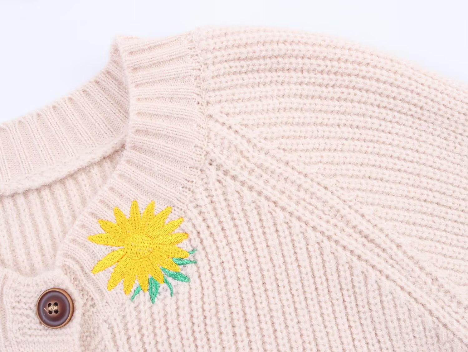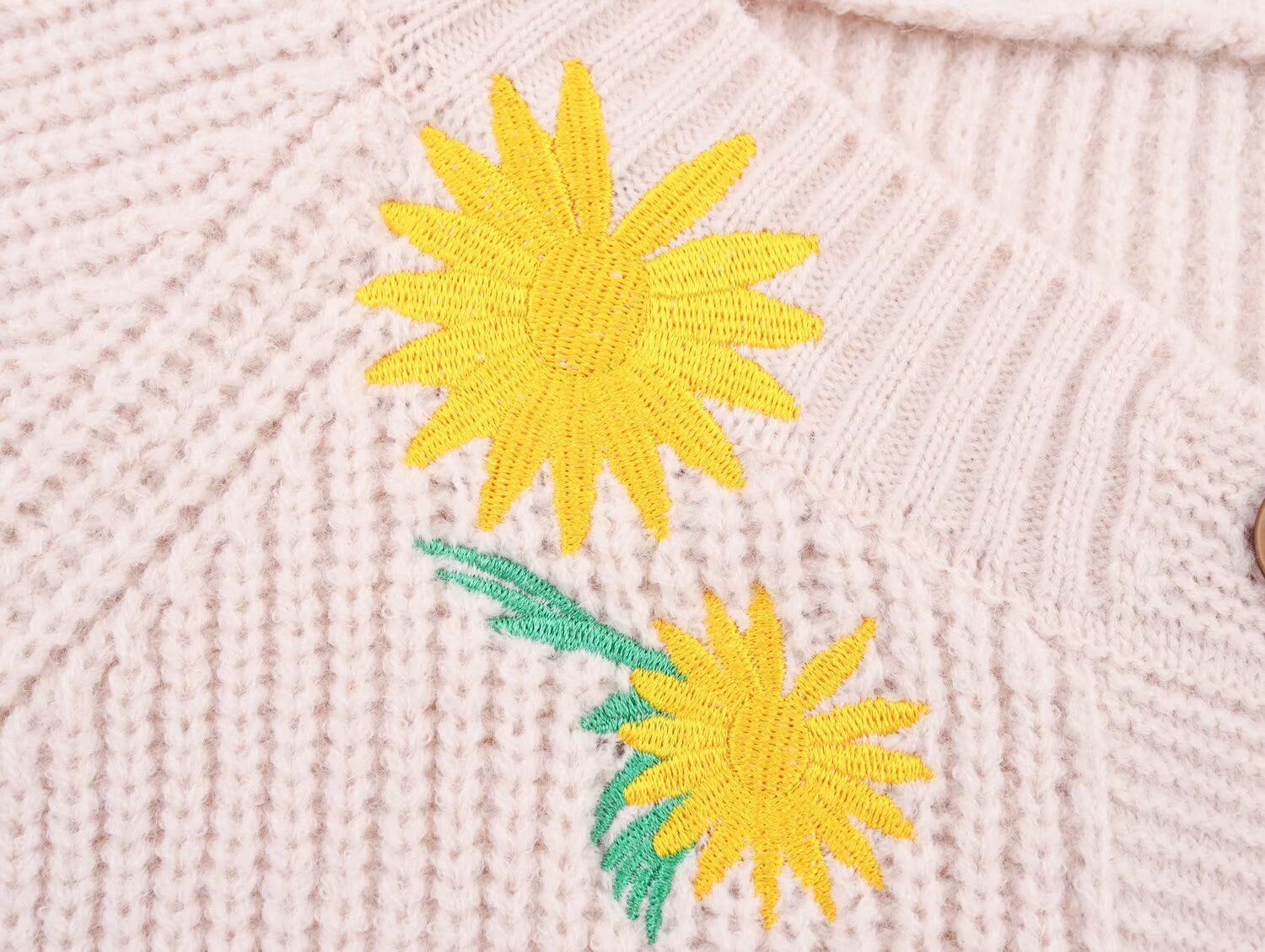 Loose and comfortable collar with floral embroidery and knitted jacket for women